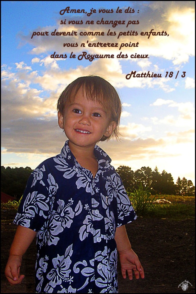 et il déclara : « Amen, je vous le dis : si vous ne changez pas pour devenir comme les enfants, vous n’entrerez pas dans le royaume des Cieux.