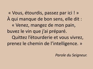 Quittez l’étourderie et vous vivrez, prenez le chemin de l’intelligence. »