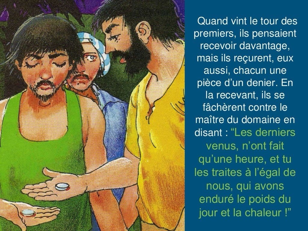 Le soir venu, le maître de la vigne dit à son intendant : “Appelle les ouvriers et distribue le salaire, en commençant par les derniers pour finir par les premiers.”