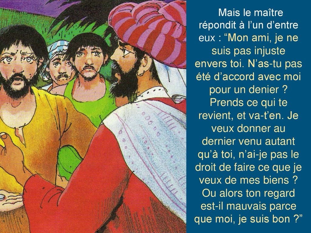 Mais le maître répondit à l’un d’entre eux : “Mon ami, je ne suis pas injuste envers toi. N’as-tu pas été d’accord avec moi pour un denier ?