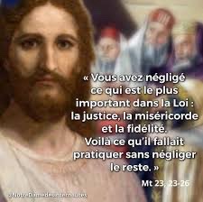 En ce temps-là, Jésus disait : Malheureux êtes-vous, scribes et pharisiens hypocrites, parce que vous payez la dîme sur la menthe, le fenouil et le cumin, mais vous avez négligé ce qui est le plus important dans la Loi : la justice, la miséricorde et la fidélité. Voilà ce qu’il fallait pratiquer sans négliger le reste.