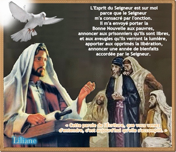Alors il se mit à leur dire : « Aujourd’hui s’accomplit ce passage de l’Écriture que vous venez d’entendre. »
