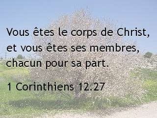 Or, vous êtes corps du Christ et, chacun pour votre part, vous êtes membres de ce corps.