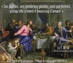 Voilà pourquoi je te le dis : ses péchés, ses nombreux péchés, sont pardonnés, puisqu’elle a montré beaucoup d’amour. Mais celui à qui on pardonne peu montre peu d’amour. »