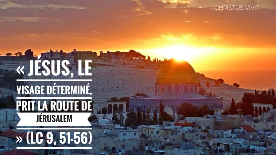 Comme s’accomplissait le temps où il allait être enlevé au ciel, Jésus, le visage déterminé, prit la route de Jérusalem.