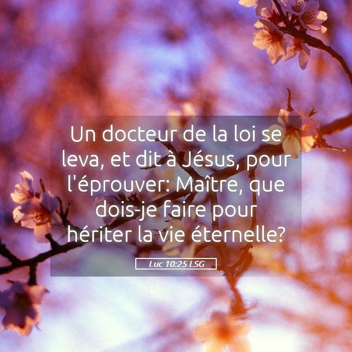 En ce temps-là, voici qu’un docteur de la Loi se leva et mit Jésus à l’épreuve en disant : « Maître, que dois-je faire pour avoir en héritage la vie éternelle ? »