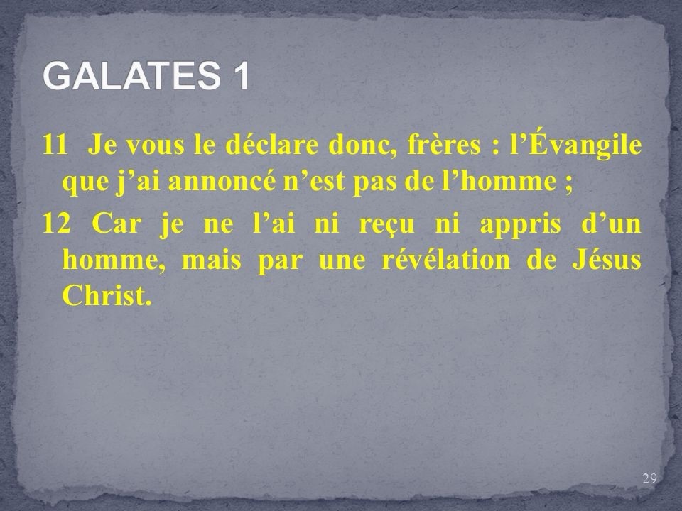 Ce n’est pas non plus d’un homme que je l’ai reçu ou appris, mais par révélation de Jésus Christ.