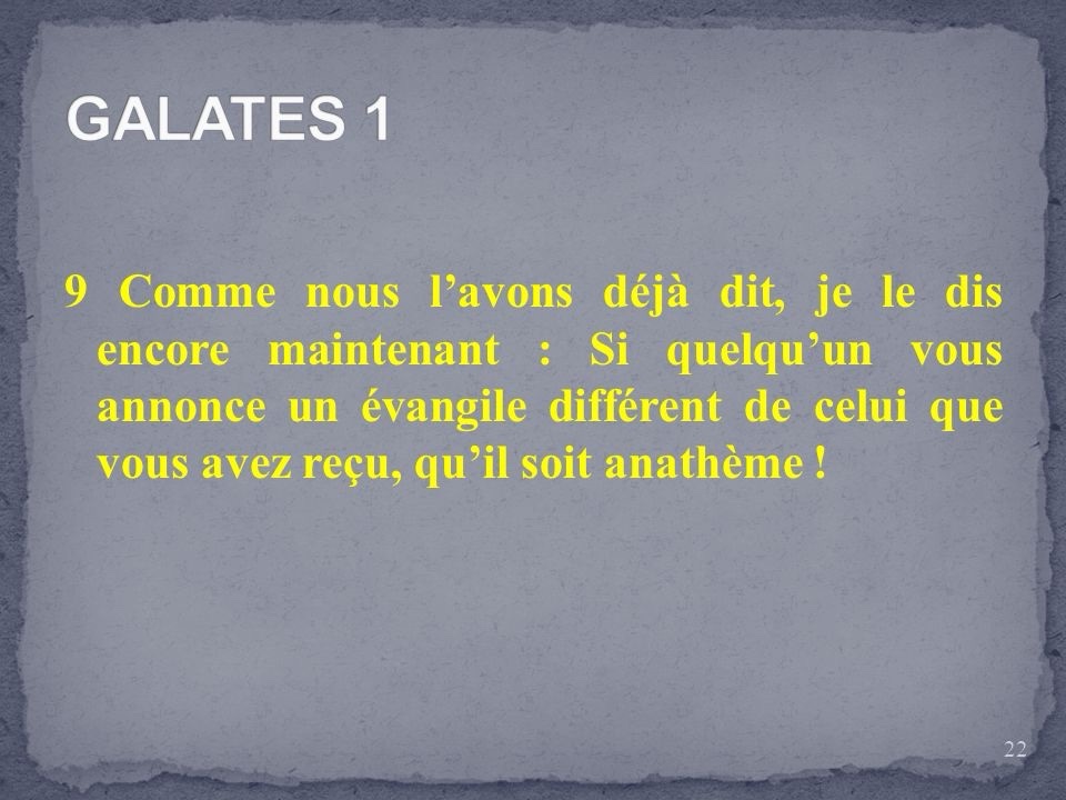 Nous l’avons déjà dit, et je le répète encore : si quelqu’un vous annonce un Évangile différent de celui que vous avez reçu, qu’il soit anathème !