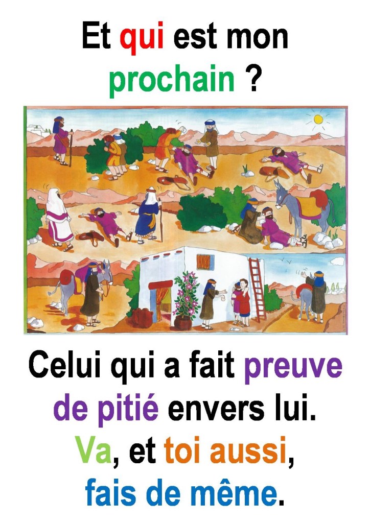 Lequel des trois, à ton avis, a été le prochain de l’homme tombé aux mains des bandits ? »