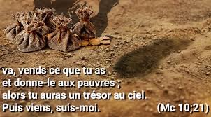 Jésus posa son regard sur lui, et il l’aima. Il lui dit : « Une seule chose te manque : va, vends ce que tu as et donne-le aux pauvres ; alors tu auras un trésor au ciel. Puis viens, suis-moi. »