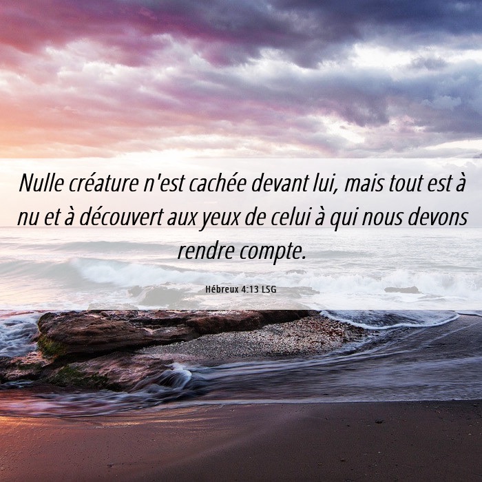 Pas une créature n’échappe à ses yeux, tout est nu devant elle, soumis à son regard ; nous aurons à lui rendre des comptes.