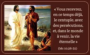 Jésus déclara : « Amen, je vous le dis : nul n’aura quitté, à cause de moi et de l’Évangile, une maison, des frères, des sœurs, une mère, un père, des enfants ou une terre