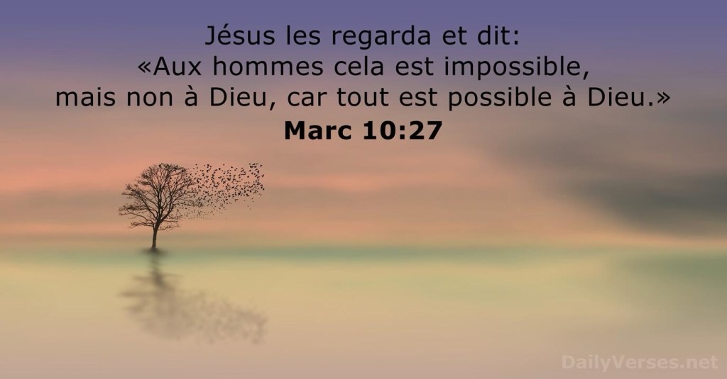 Jésus les regarde et dit : « Pour les hommes, c’est impossible, mais pas pour Dieu ; car tout est possible à Dieu. »
