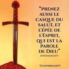 Prenez le casque du salut et le glaive de l’Esprit, c’est-à-dire la parole de Dieu.