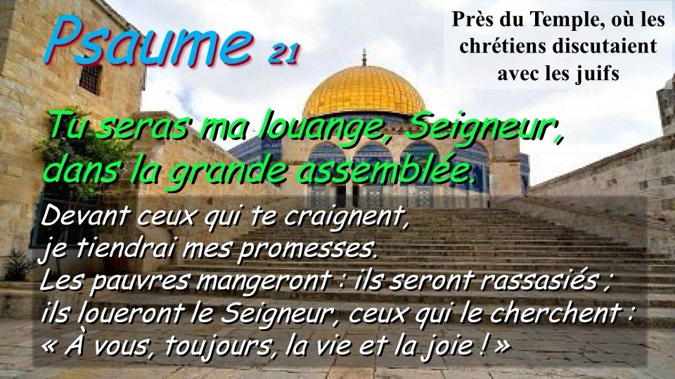 Tu seras ma louange dans la grande assemblée ; devant ceux qui te craignent, je tiendrai mes promesses.