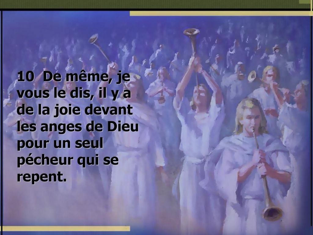 Ainsi je vous le dis : Il y a de la joie devant les anges de Dieu pour un seul pécheur qui se convertit. »