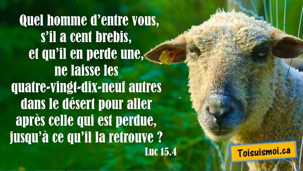 « Si l’un de vous a cent brebis et qu’il en perd une, n’abandonne-t-il pas les quatre-vingt-dix-neuf autres dans le désert pour aller chercher celle qui est perdue, jusqu’à ce qu’il la retrouve ?