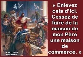 et dit aux marchands de colombes : « Enlevez cela d’ici. Cessez de faire de la maison de mon Père une maison de commerce. »