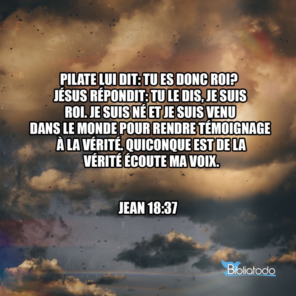 Moi, je suis né, je suis venu dans le monde pour ceci : rendre témoignage à la vérité. Quiconque appartient à la vérité écoute ma voix. »