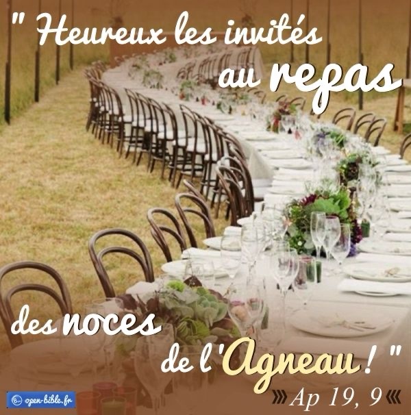 Puis l’ange me dit : « Écris : Heureux les invités au repas des noces de l’Agneau ! »
