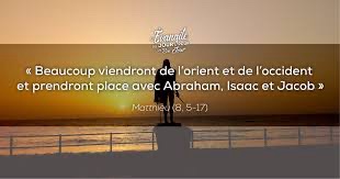 Aussi je vous le dis : Beaucoup viendront de l’orient et de l’occident et prendront place avec Abraham, Isaac et Jacob au festin du royaume des Cieux,