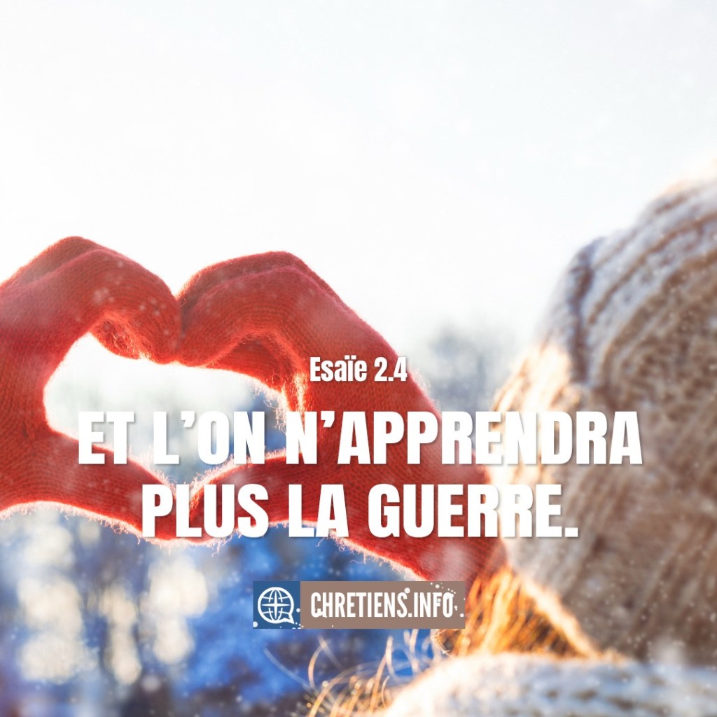 Il sera juge entre les nations et l’arbitre de peuples nombreux. De leurs épées, ils forgeront des socs, et de leurs lances, des faucilles. Jamais nation contre nation ne lèvera l’épée ; ils n’apprendront plus la guerre.