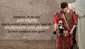 Le centurion reprit : « Seigneur, je ne suis pas digne que tu entres sous mon toit, mais dis seulement une parole et mon serviteur sera guéri.