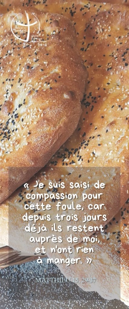 Jésus appela ses disciples et leur dit : « Je suis saisi de compassion pour cette foule, car depuis trois jours déjà ils restent auprès de moi, et n’ont rien à manger. Je ne veux pas les renvoyer à jeun, ils pourraient défaillir en chemin. »