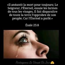 Il fera disparaître la mort pour toujours. Le Seigneur Dieu essuiera les larmes sur tous les visages, et par toute la terre il effacera l’humiliation de son peuple. Le Seigneur a parlé.