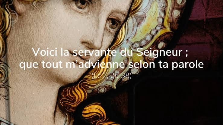 Marie dit alors : « Voici la servante du Seigneur ; que tout m’advienne selon ta parole. » Alors l’ange la quitta.