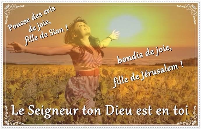 Le Seigneur ton Dieu est en toi, c’est lui, le héros qui apporte le salut. Il aura en toi sa joie et son allégresse, il te renouvellera par son amour ; il exultera pour toi et se réjouira,