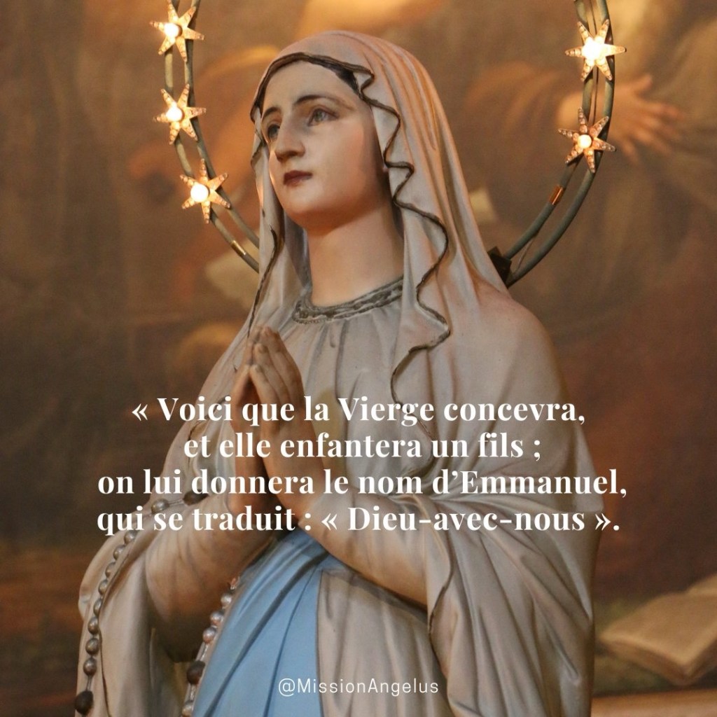 ‘Voici que la Vierge concevra, et elle enfantera un fils ; on lui donnera le nom d’Emmanuel’, qui se traduit : « Dieu-avec-nous »