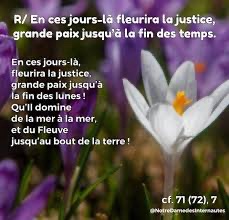 R/ En ces jours-là fleurira la justice, grande paix jusqu’à la fin des temps. (Ps 71, 7)