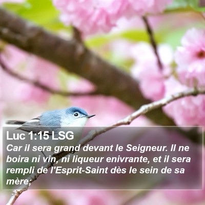 car il sera grand devant le Seigneur. Il ne boira pas de vin ni de boisson forte, et il sera rempli d’Esprit Saint dès le ventre de sa mère ;