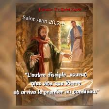 Ils couraient tous les deux ensemble, mais l’autre disciple courut plus vite que Pierre et arriva le premier au tombeau.