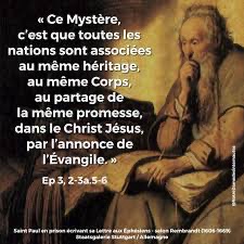 Ce mystère, c’est que toutes les nations sont associées au même héritage, au même corps, au partage de la même promesse, dans le Christ Jésus, par l’annonce de l’Évangile.