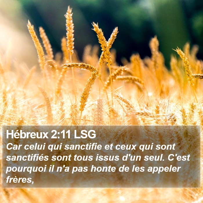 Car celui qui sanctifie, et ceux qui sont sanctifiés, doivent tous avoir même origine ; pour cette raison, Jésus n’a pas honte de les appeler ses frères,