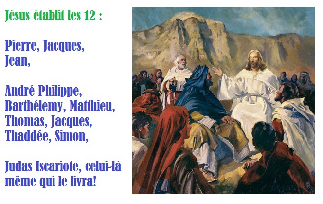 et il en institua douze pour qu’ils soient avec lui et pour les envoyer proclamer la Bonne Nouvelle