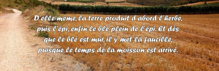 Et dès que le blé est mûr, il y met la faucille, puisque le temps de la moisson est arrivé. »