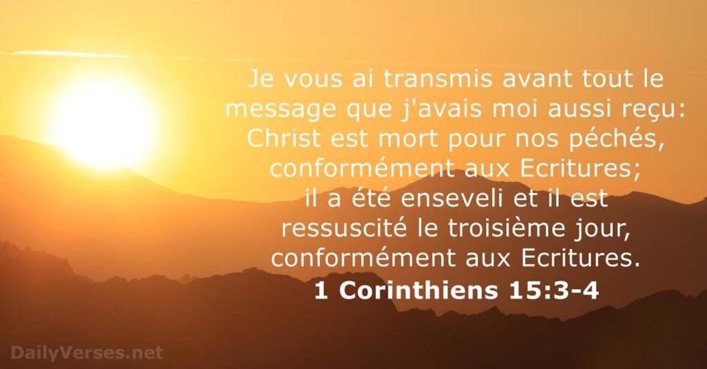 Avant tout, je vous ai transmis ceci, que j’ai moi-même reçu : le Christ est mort pour nos péchés conformément aux Écritures,
