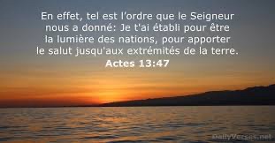 C’est le commandement que le Seigneur nous a donné : ‘J’ai fait de toi la lumière des nations pour que, grâce à toi, le salut parvienne jusqu’aux extrémités de la terre.’ »