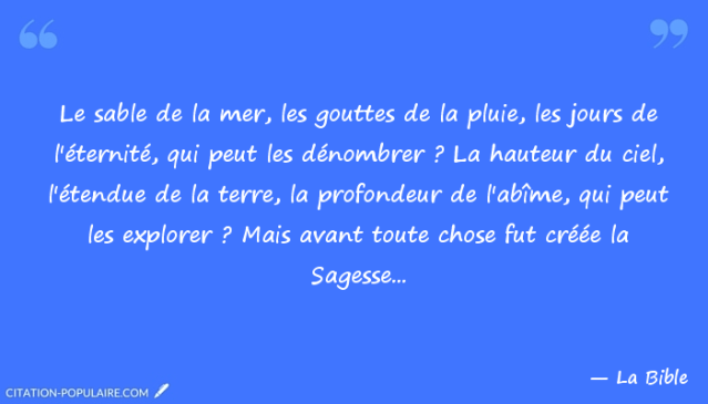 Le sable des mers, les gouttes de la pluie, et les jours de l’éternité, qui pourra en faire le compte ?
