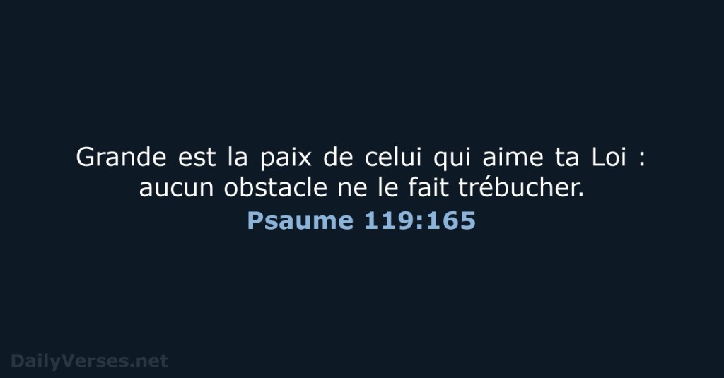 Grande est la paix de qui aime ta loi ; jamais il ne trébuche.