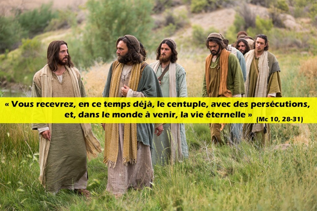 sans qu’il reçoive, en ce temps déjà, le centuple : maisons, frères, sœurs, mères, enfants et terres, avec des persécutions, et, dans le monde à venir, la vie éternelle.
