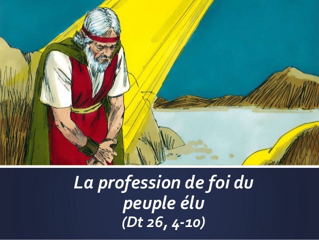 Tu prononceras ces paroles devant le Seigneur ton Dieu : « Mon père était un Araméen nomade, qui descendit en Égypte : il y vécut en immigré avec son petit clan. C’est là qu’il est devenu une grande nation, puissante et nombreuse.