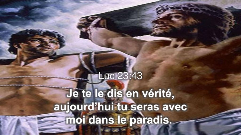 Lorsqu’ils furent arrivés au lieu dit : Le Crâne (ou Calvaire), là ils crucifièrent Jésus, avec les deux malfaiteurs, l’un à droite et l’autre à gauche.