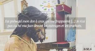 J’ai présenté mon dos à ceux qui me frappaient, et mes joues à ceux qui m’arrachaient la barbe. Je n’ai pas caché ma face devant les outrages et les crachats.