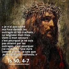 J’ai présenté mon dos à ceux qui me frappaient, et mes joues à ceux qui m’arrachaient la barbe. Je n’ai pas caché ma face devant les outrages et les crachats.
