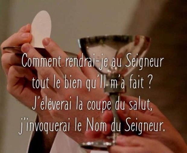 R/ J’élèverai la coupe du salut, j’invoquerai le nom du Seigneur. (Ps 115, 13)