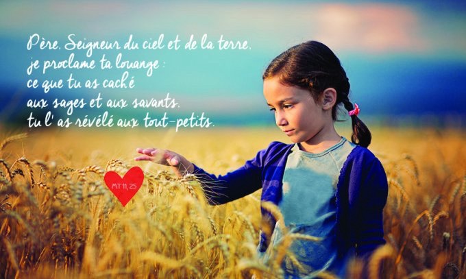 En ce temps-là, Jésus prit la parole et dit : « Père, Seigneur du ciel et de la terre, je proclame ta louange : ce que tu as caché aux sages et aux savants, tu l’as révélé aux tout-petits.